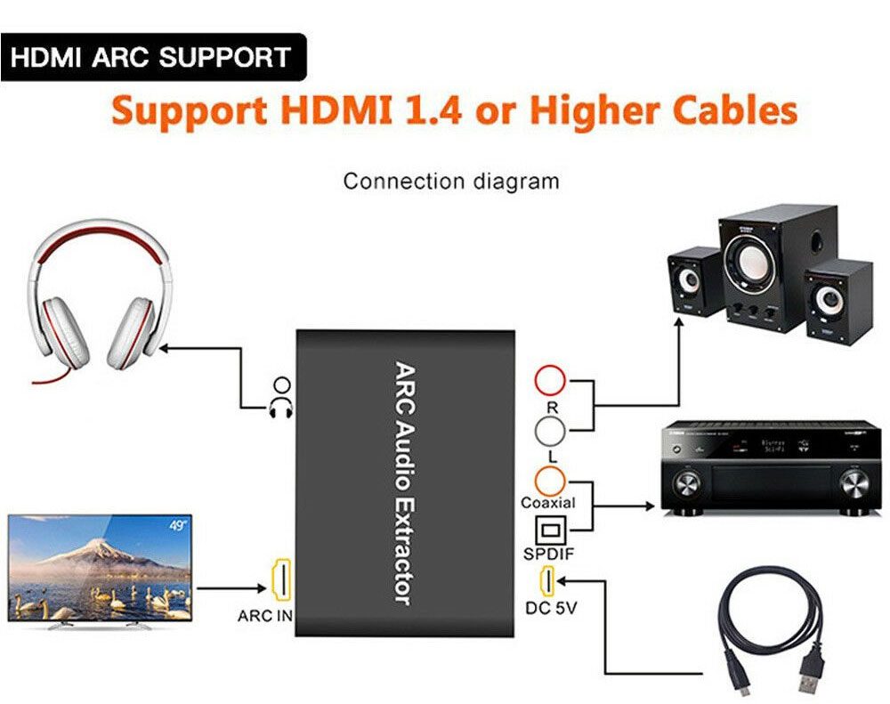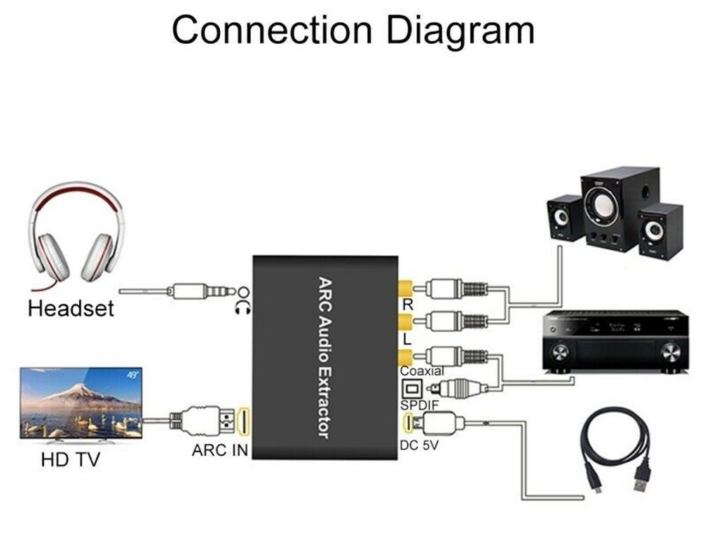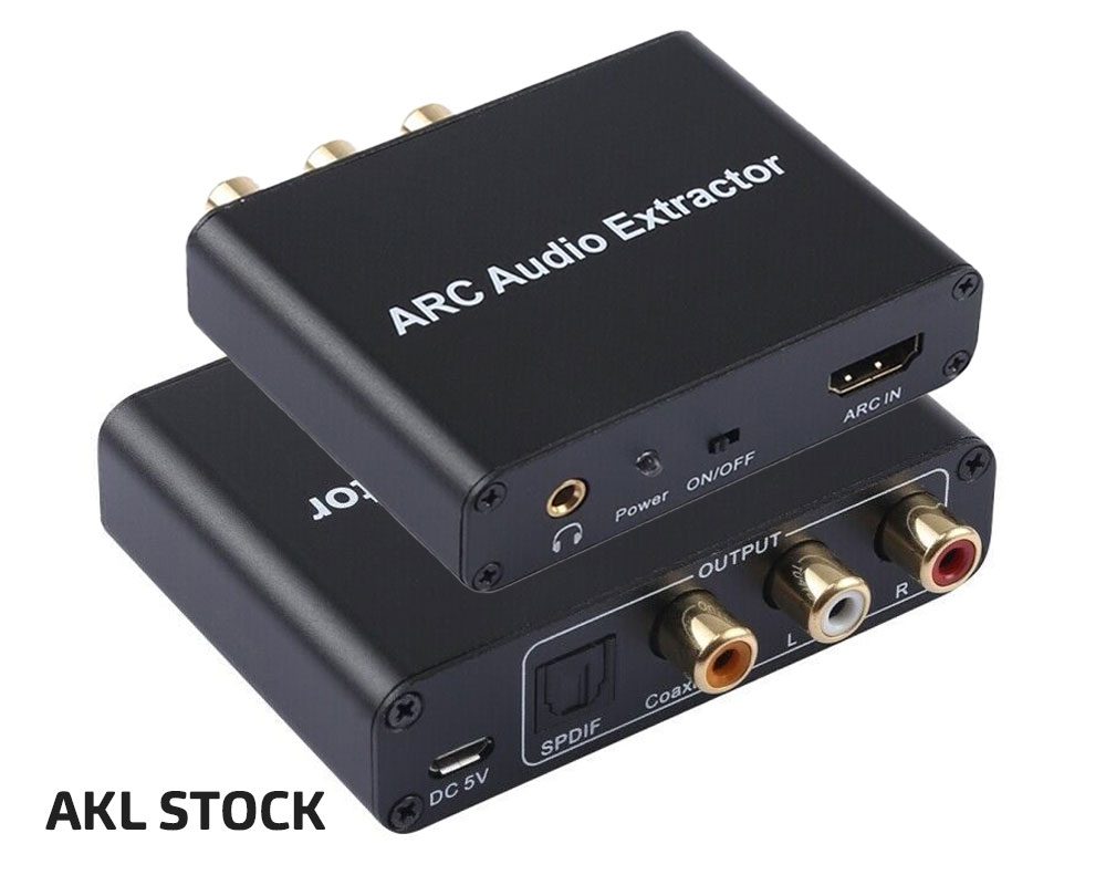 - HDMI ARC Audio Extractor Adapter Fiber Coaxial 3.5mm RCA Stereo Converter