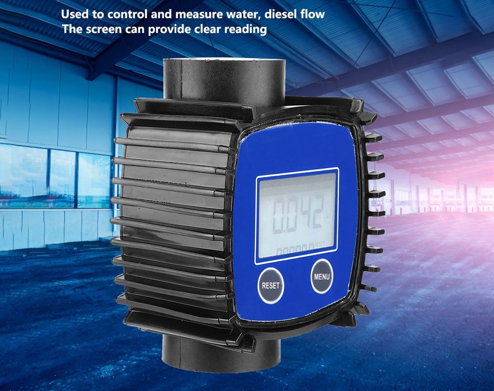 Monitor low-viscosity fluid flow with the reliable Digital Turbine Flow Meter. Easy to install in-line or at the pipe end with its 1inch female stainless steel thread. The large LCD display can be positioned for easy reading and shows the supported flow rate (up to 120L/min), a 5-digit resettable count (0.00-9999.9), and a 7-digit total cumulative count. Built for durability with a sturdy, sealed housing, it operates on 2×AA batteries and can measure flow in L, GAL, PTS, or QTS. Ideal for measuring Diesel, Kerosene, Gasoline, Methanol, Urea, and Water.
