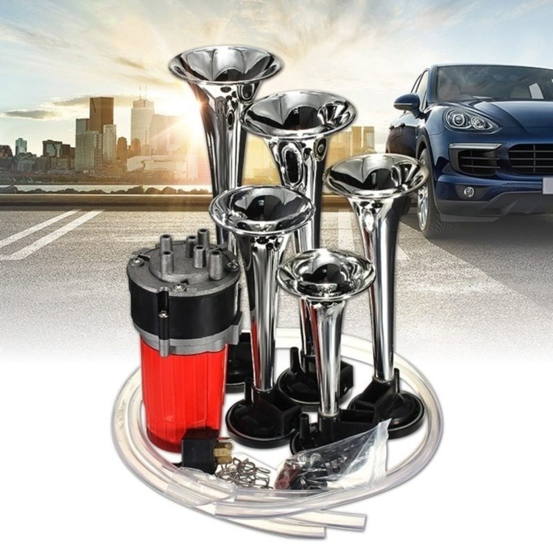 Desciption: Comes with 5 chrome Dixie trumpet 12V air horns Perfect replacement Material:ABS plastic Sound pressure level : 125db Plays the Dixie melody This horn sounds like the one used on the General Leethe Dukes of Hazzard movie. Fitment: Fit For Cars, Trucks, Busses, and Boats Any 12 Volt Vehicles Heavy Duty Compressor-Works on any 12 volt system GREAT for CARS, Trucks, Golf Carts, Boats...ANYTHING 12 Volt!! Strong ABS Trumpets that are weather resistant. A Must have for any DUKES OF HAZZARD Fan!!!