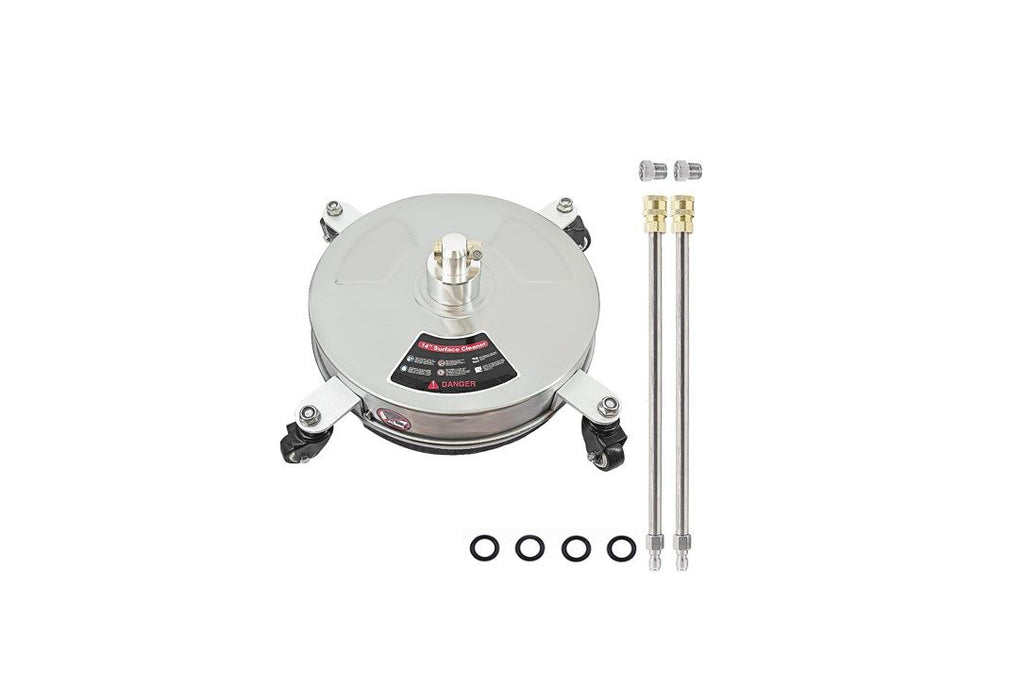 - Equipped with sturdy wheels, this 4000 PSI pressure washer surface cleaner attachment offers exceptional manoeuvrability. It effortlessly glides across large areas, delivering thorough and efficient cleaning.