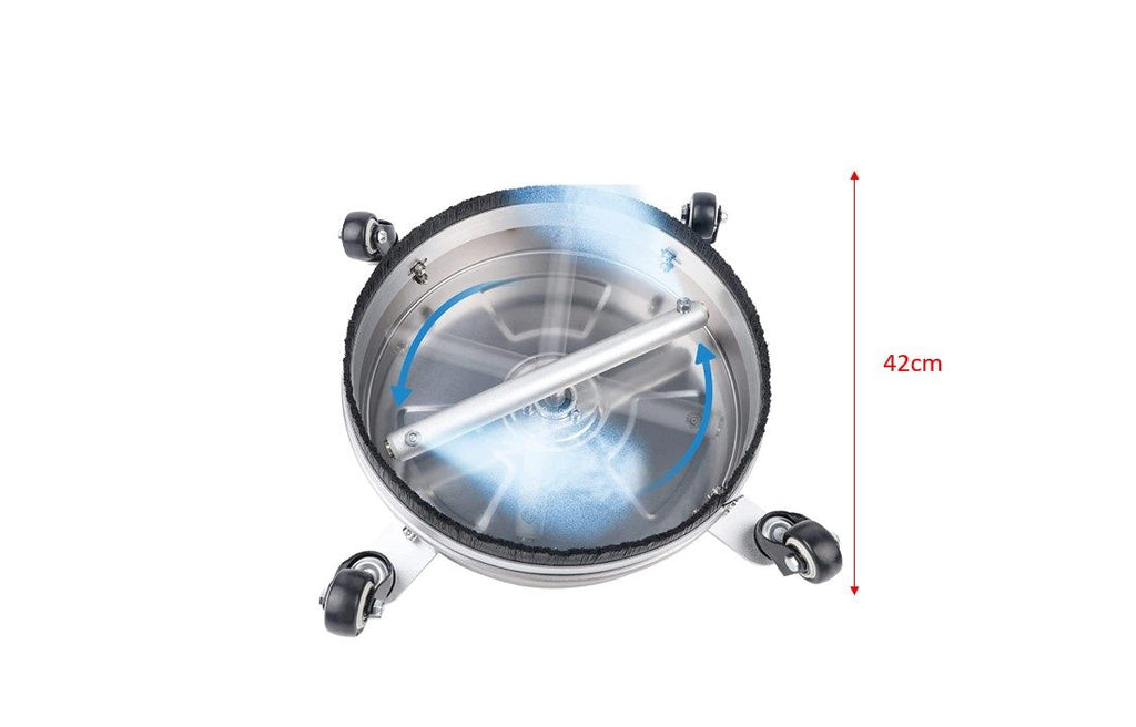- EFFICIENT 16.5" WIDE CLEANING - With two rotating nozzles, this pressure washer surface cleaner delivers professional-grade cleaning across a generous 16.5" width. The 360° rotating sprayer rod ensures even water pressure distribution for consistent results.