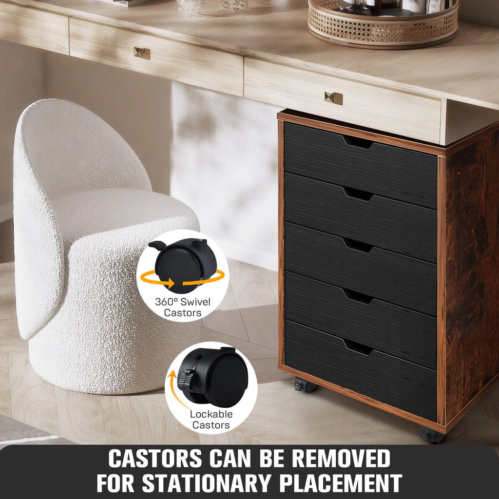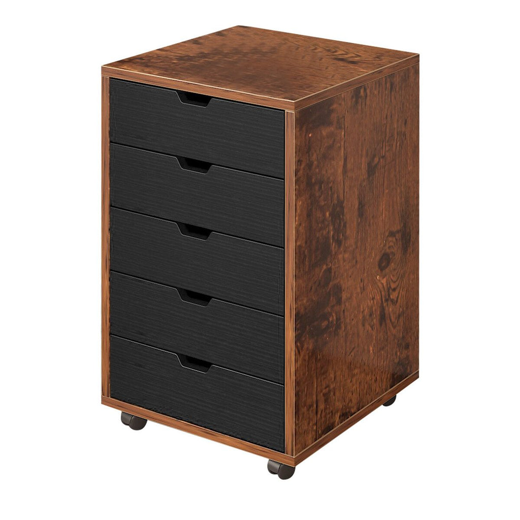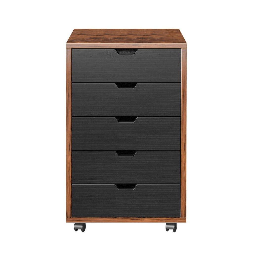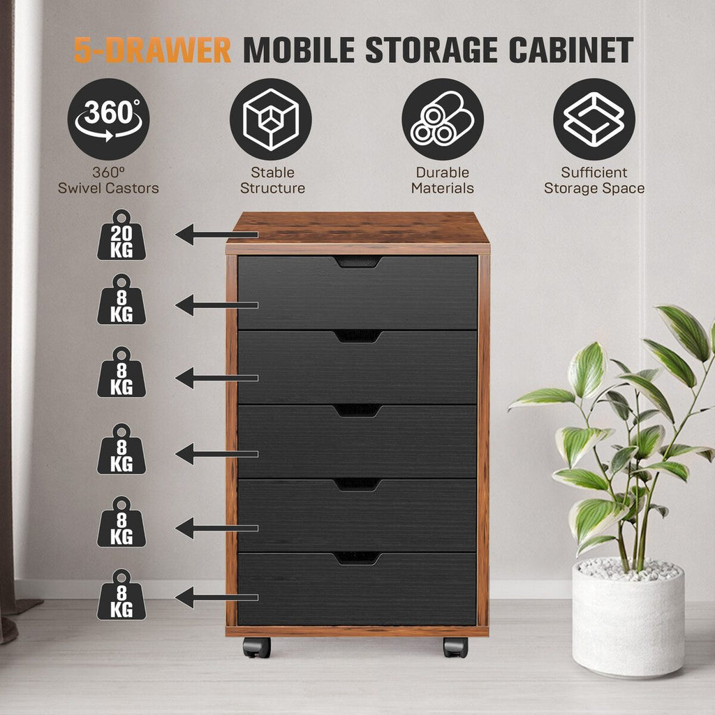 5 Drawer File Cabinet Mobile Filing Document Organiser Chest Cupboard Brown