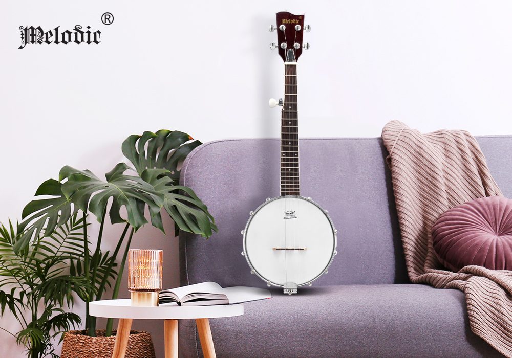 This Melodic 5-string banjo is perfect to buy. It is solid and durable with a wood frame, whose back and side are made of Mahogany while the fingerboard is rosewood. It features an additional 5th geared tuner side-peg for better tuning and performance, 12 adjustable consolidation brackets equipped around the drum, and a mid-range closed handle for easy holding. Also, the steel strings are strong yet flexible to pluck. Due to its reliable quality, the banjo instrument can retain good condition for years and years.