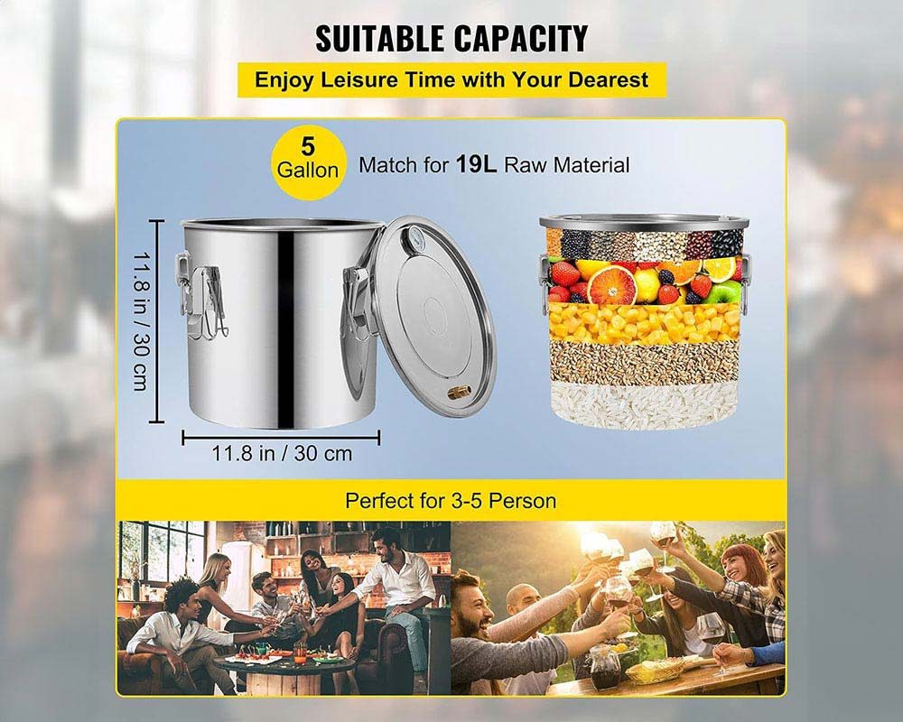 5Gal Alcohol Distiller 19L Moonshine Still Water Wine Spirits Brew Home