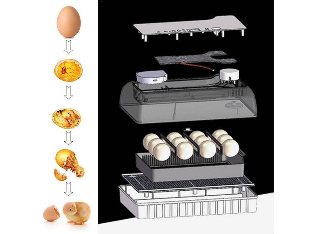 - Capacity: 12 chicken eggs, 9 duck eggs, 4 goose eggs, 24 pigeon eggs, 35 quail eggs