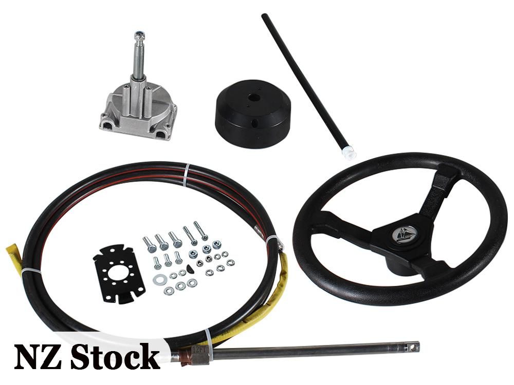 The boat steering system kit is specially designed and developed for marine use. It comes with a 12 ft steering cable, a standard 3/4" tapered shaft, a swivel helmet, a 13.5" steering wheel, a 90-degree bezel kit, and hardware. Enables the vessel to steer accurately and improves work efficiency. Take control of your boat, and create waves all summer long.