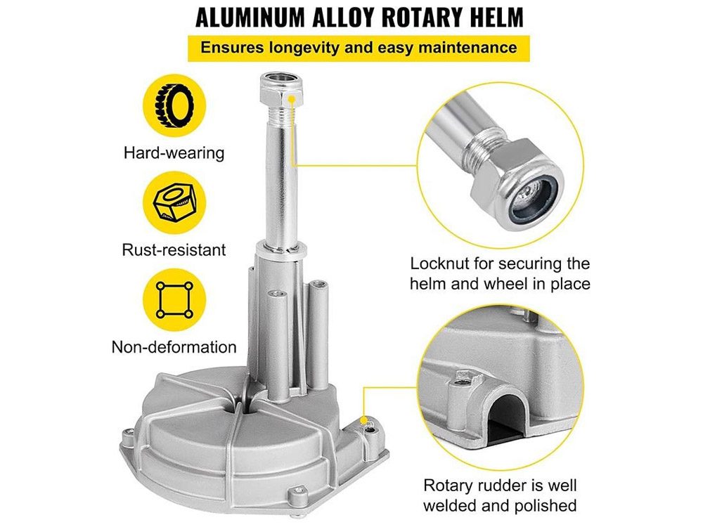 - Durable & Robust Rotary Helm: Characterized by its premium alloy material, the rotary helm is rust-proof and resistant to wear. Heavy-duty material ensures longevity and easy maintenance. Adjustable nuts are used to secure the rudder.