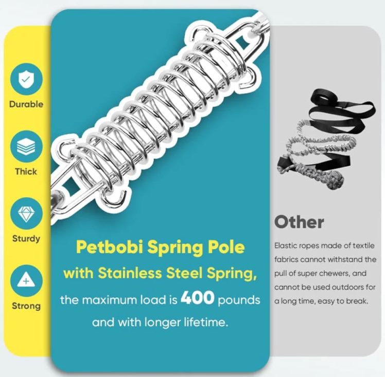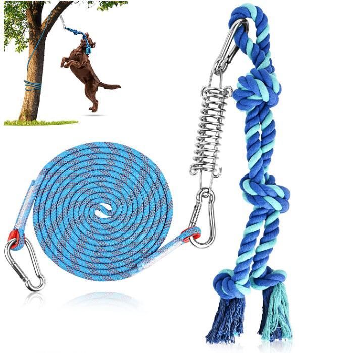 Features: Entertain Themselves With Dog Tree Tug Toys: We just hang the dog tree tug toy on the tree, then drink coffee leisurely to watch the fur kids consume energy in happiness, so as to avoid demolishing the house after back indoors. Aggressive Chewers Buster: The dog tug-of-war toy is made of premium stainless spring, durable nylon ropes, and high-quality washable cotton knots Tough and durable, safe and healthy, not limited to places Effective Buffering & Safety Guard Spring Pole: A safe and durable dog tree tug toy is our target and the first choice for Dog parents. Stainless steel spring poles can long-term outdoor use without fear of rust Easy to Hang & Teeth Cleaning: Nylon rope of pit bull dog toys is woven compactly, safe, and durable the length fits trees of different thicknesses, no need to spend more time looking for the right tree.