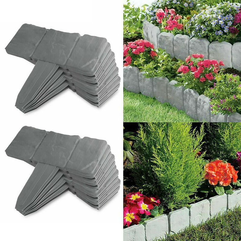 Brand New 10pcs Home Garden Border Edging Plastic Fence Panel Stone Look Lawn Yard Edge Flower Bed Garden Fence Brick Stone Tone, Tree Root Stop, Lawn Gardening Decoration DIY