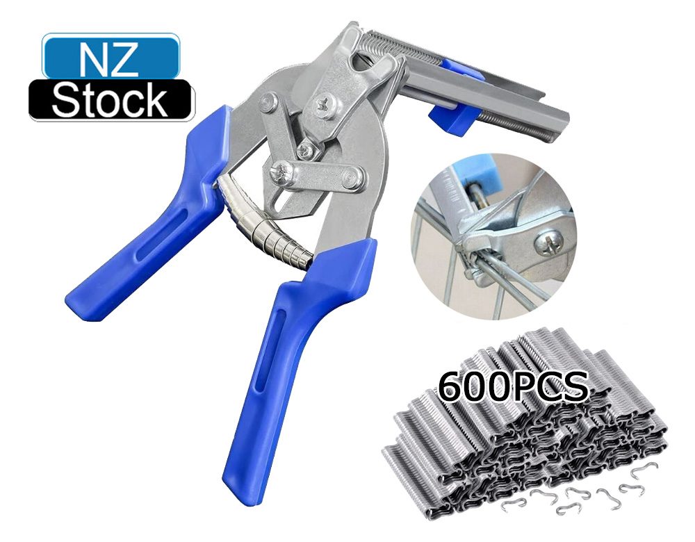 Type M Hog Nail Ring Pliers Kit with 600Pcs Type M Hog Rings for Fence Fastening.