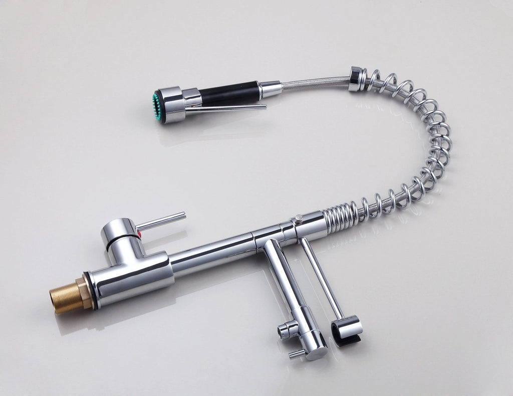 Solid Brass Body, lead-free, safe, durable, and reliable. Multi-layer polished chrome finish, stunning looks, rust, corrosion & tarnish resistant. Hot and cold water optional. 360 degree swivel spout suitable for single and multiple bowl sinks. Quality ABS spout head with extension hose can be pulled out and makes cleaning easier. Extendable spout makes cleaning easier and can meet your different needs. There is a switch on spout to change the water flow patterns as you wish. Easy to Install, comes with complete attachment sets and accessories.