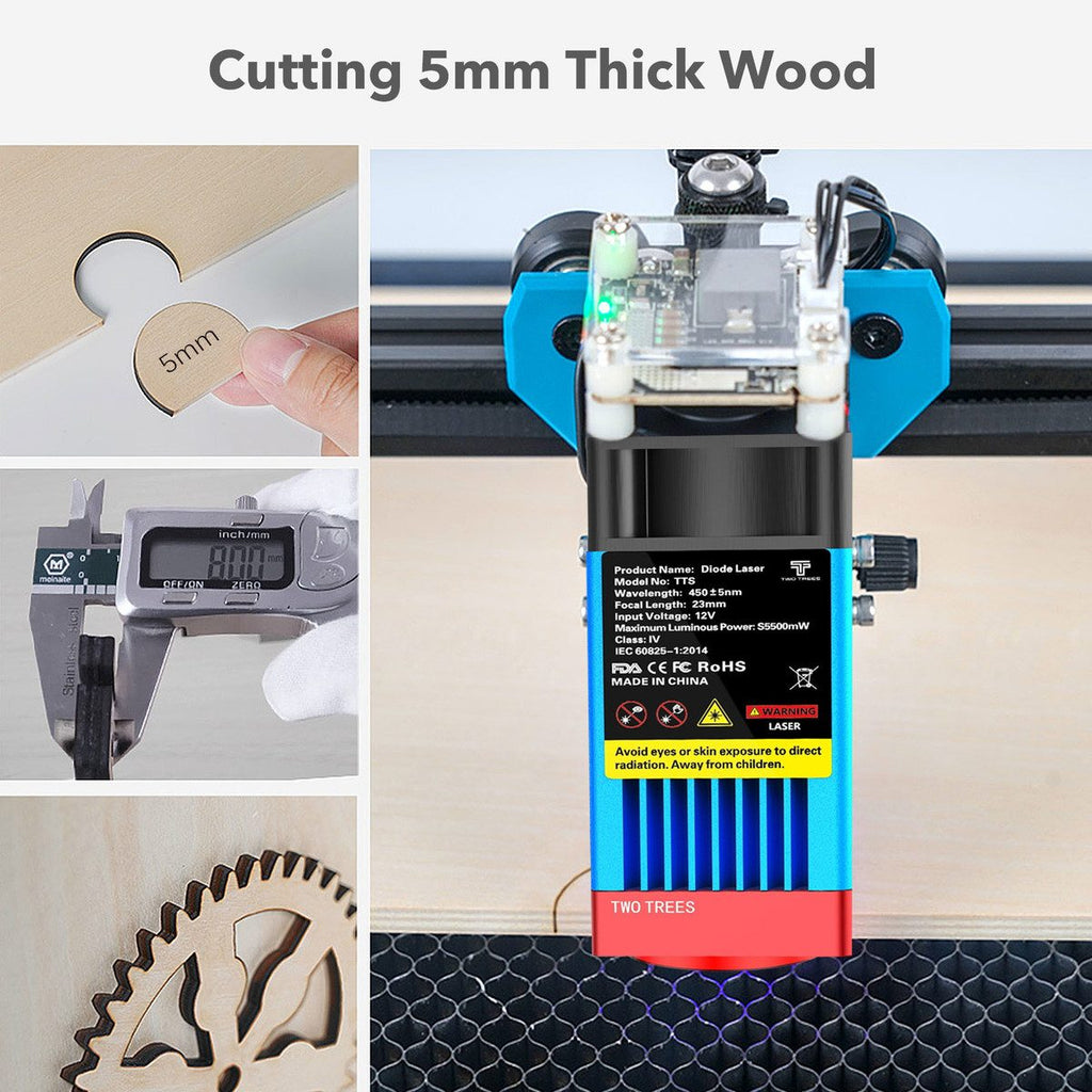 Features: Advanced Laser Technology: The laser module uses the latest LD+FAC+C-Lens compression spot technology with a 23-mm fixed focus. The short-focus laser has stronger engraving and cutting ability than other long-focus lasers. 32-bit Motherboard: The motherboard adopts a 32-bit dual-core MCU, which has a faster processing speed and an engraving speed of up to 10000 mm/min. The laser can engrave online and work on a TF card for offline engraving. Because of the built-in WiFi module, you can also engrave using a mobile phone app or a computer web. Capability of Engraving and Cutting: The laser can engrave wood, plastic, paper, leather, bamboo, sponge paper, alumina, stainless steel, chevron board, acrylic, etc. The laser can cut up to 5 mm thick plywood, 3 mm thick acrylic board, 3 mm thick carton, 0.7 mm thick leather, and so on. Perfectly Compatible System: Use LaserGRBL or LightBurn. Supports Windows XP, 7, 8, 10, and 11, as well as Mac systems EESS number: E2023106157