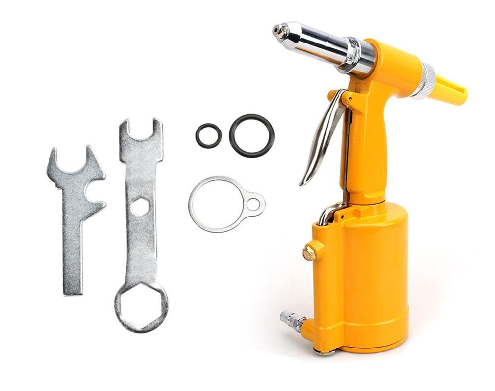 1 * Pneumatic Rivet Gun 1 * Mandrel Catcher 4 * Nail Guides 2 * Wrenches 2 * Rubber Rings 1 * Metal Ring