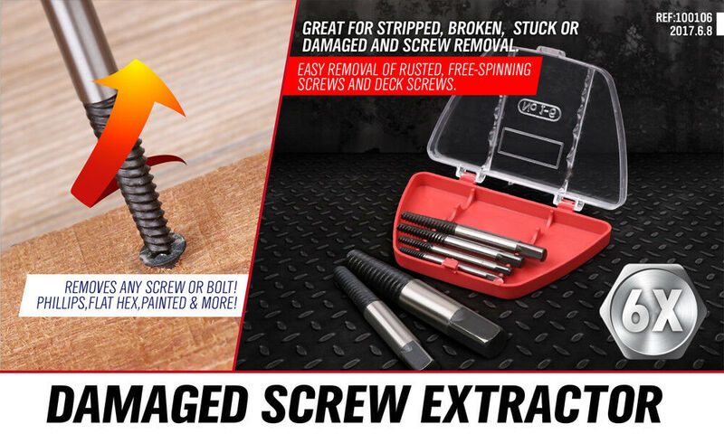 This auction Brand New HORUSDY 6pcs Damaged Screw Extractor Ezy Set Easy Out Broken Screw Bolt Remover Kit