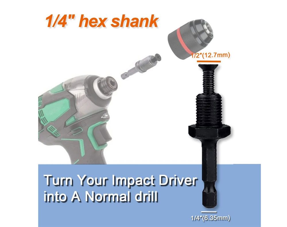 Expand the versatility of your impact driver with our keyless drill chuck adapter. This high-quality adapter allows you to easily switch between drilling and driving tasks, saving you time and space. The 1.5-13mm clamping range accommodates a wide variety of drill bits, while the 1/4" hex shank ensures compatibility with most impact drivers. Upgrade your tool kit and streamline your projects with this essential accessory