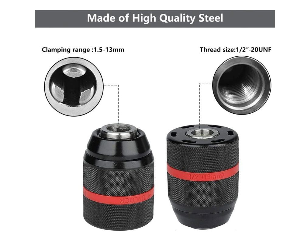 - 1.5-13mm Drill Bit Capacity (Round Shank)