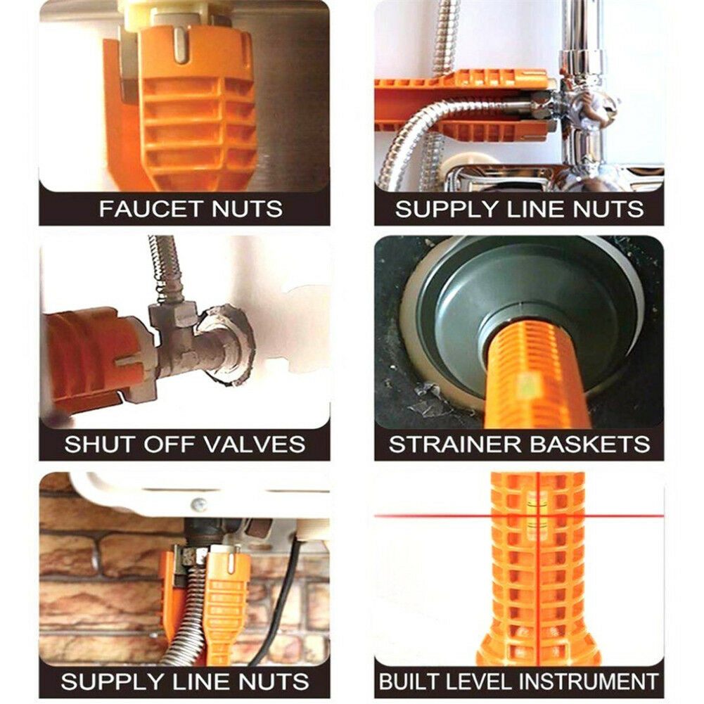 Feature > The wrench is made of lightweight, high-strength plastic and durable aluminum alloy. > Plumbing tools is a must-have gadget for your toolbox, fastens and removes all kinds of plastic basin nuts and supply line nuts, along with 1-inch and 7/8-inch hex nuts.. > Simply snap the position and rotate quickly, then replace the nut installed from the faucet. > When remove the both inserts, the notched ends engage 2, 3, 4 and 6 tab basin nuts. > This repair and installation hand tools suit for Faucet and Sink Installer. Especially for nuts/Shut off valves/Strainer Baskets/Supply Line Nut/Faucet Nuts - Toilet Bowl/Sink/Bathroom/Kitchen Plumbing and more.