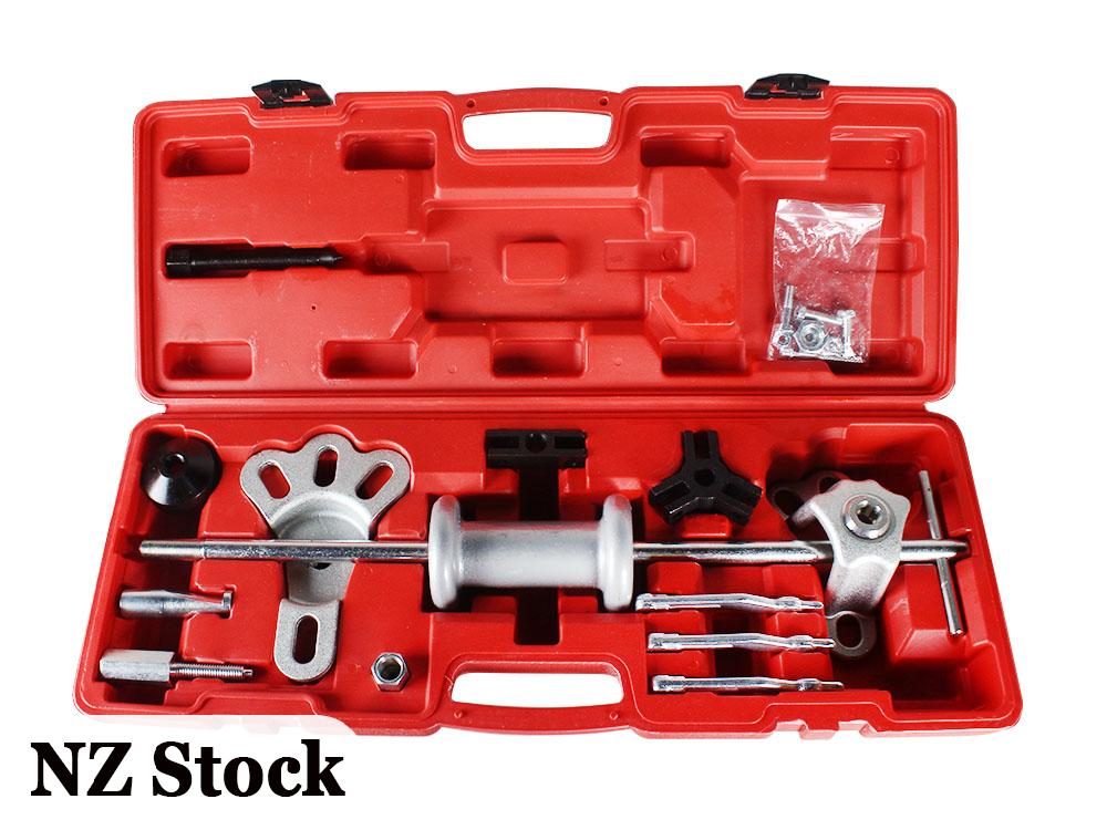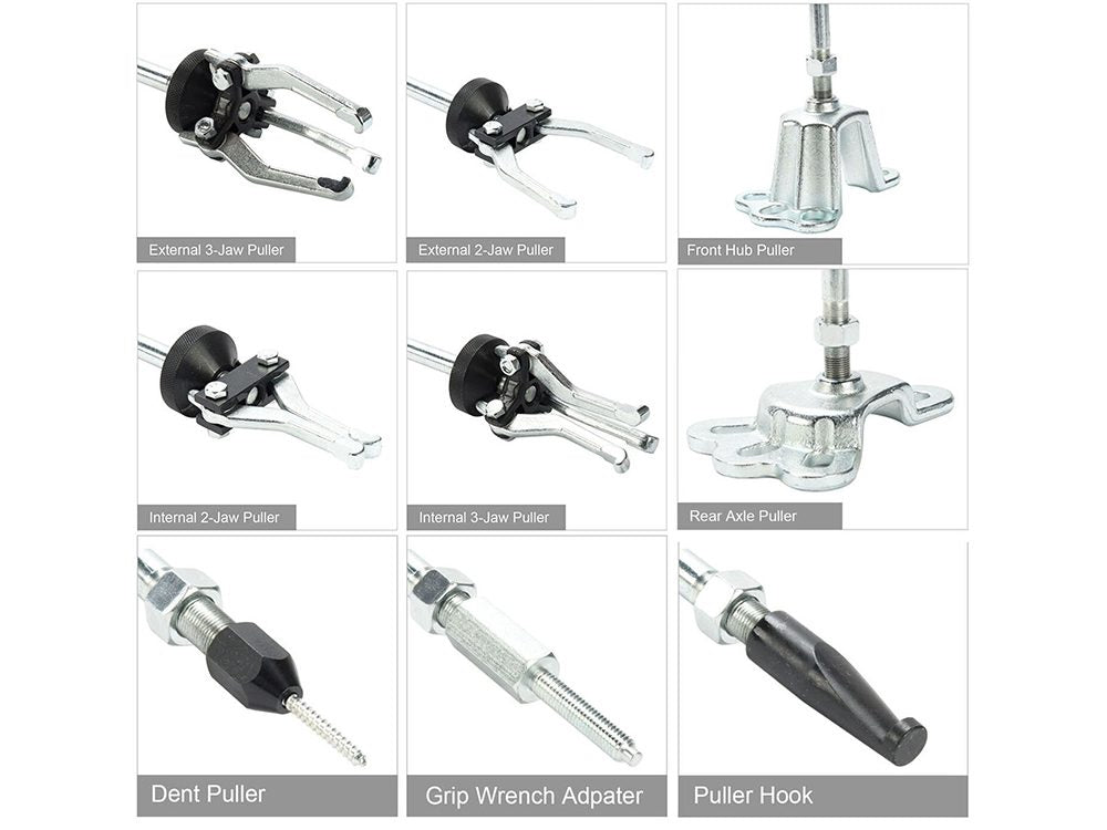 - Auto Repair Tool Kit: This slide hammer puller set are used to aggressively remove tightly jammed parts or dents.This hammer tool slide kit includes 2-jaw and 3-jaw pullers for internal and external work to provide a variety of combinations to pull bearing, gears, and seals. 2 and 3-way cross blocks and cone-type puller provide the perfect jaw configuration for most jobs.