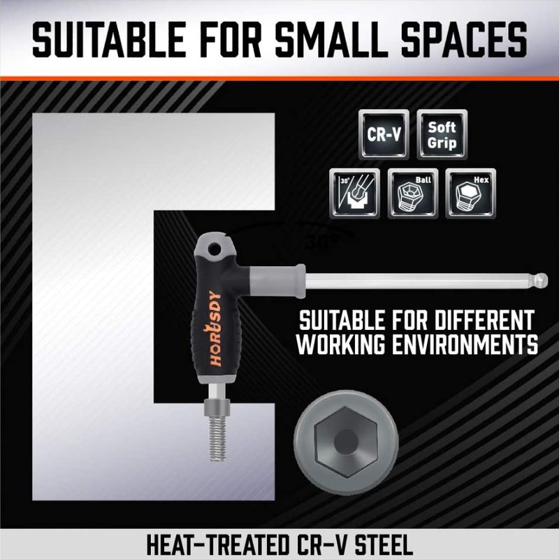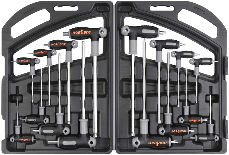 This auction Brand New HORUSDY 16-Piece T-Handle Allen wrench set 2mm-10mm, Long Arm Ball End Hex Key Wrench Set, Tamper Proof Star Key Set T10-T50, Metric