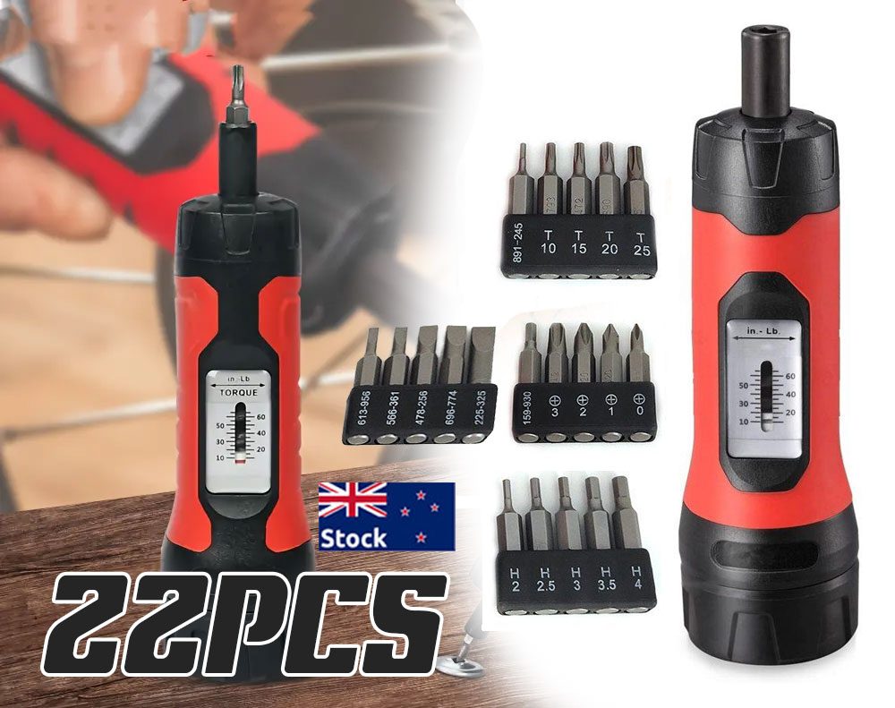 Unlock professional-grade precision with our Premium 22-Piece Torque Screwdriver Set. Engineered for professionals and DIY enthusiasts, this high-performance tool delivers exceptional accuracy and reliability across electrical, industrial, and mechanical applications. Crafted from premium Chrome Vanadium Steel, the torque screwdriver ensures optimal fastener protection with an adjustable 10-65 in.lb measurement range. The ergonomic anti-slip handle provides unparalleled comfort and control, while the magnetic connection and compatibility with standard 1/4" bits offer maximum versatility.