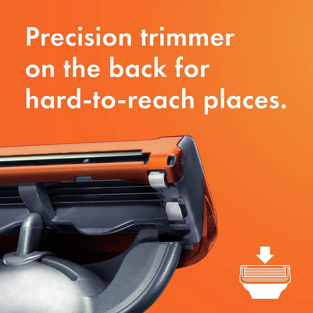 Replacement for Gillette razors for men with 5 anti-friction blades. A shave you barely feel Men's razor with Precision Trimmer on back—great for hard-to-reach areas and styling facial hair Lubrication Strip fades when you are no longer getting an optimal shave 5 razor blade refill equals up to one month of shaves Fits All Fusion5 & Fusion5 Power Razors