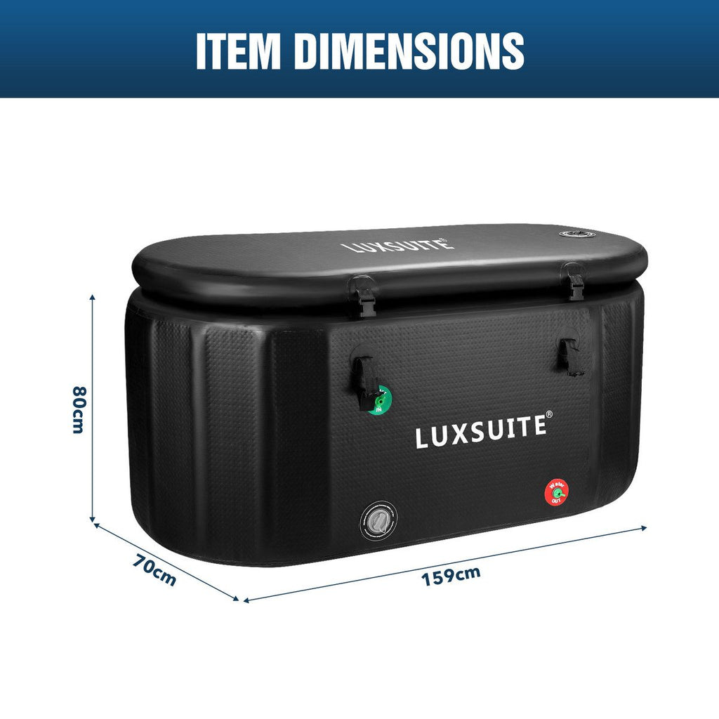 Extra Large Size; Measuring 159x78x70cm, the Luxsuite ice bath is the largest, fitting individuals up to 213cm tall. The large size allows you to fully immerse yourself and enjoy the rejuvenating benefits of cold water therapy in comfort.