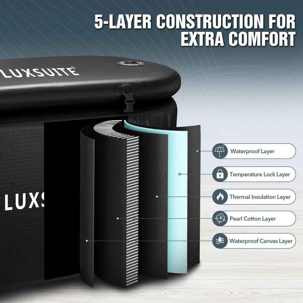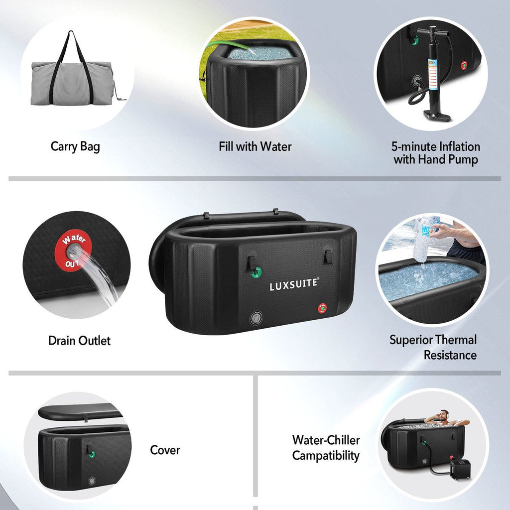 Lifetime Durability: Constructed with reinforced fibreglass and skin-friendly PVC, the Luxsuite ice bath has hardened walls and an insulated design for lifelong durability. It is built to withstand daily use with lasting performance and reliability.