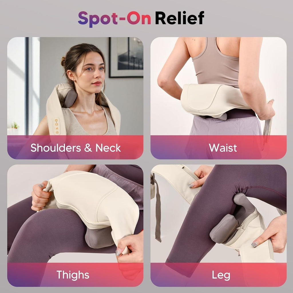 Main Features: --Upgraded 8D Simulated Human Hand Massage: The 8D neck massager simulates the movements and pressure of real human hands, bringing a realistic massage experience.