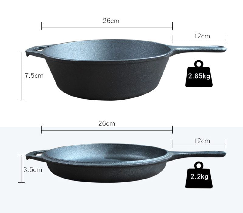 2 In 1 Cast Iron Frying Pan Pot with Lid Oven Skillet Set