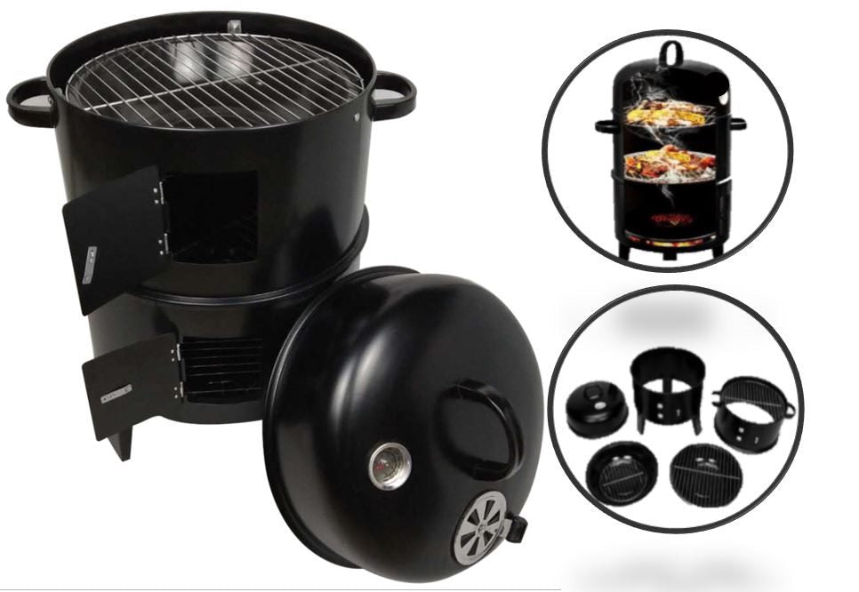 3 in 1 Barrel Smoker BBQ Charcoal Smoker Barbecue Grill 3 Layers