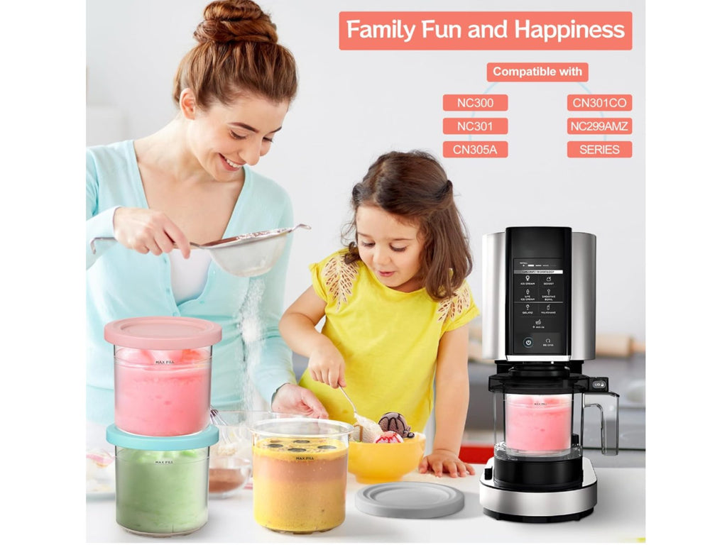 Compatibility: This 4-pack of replacement pints and lids is designed specifically for the Ninja Ice Cream Machines NC301, NC290, NC299AMZ, CN305A, and CN301CO series. It’s important to note that these pints are not compatible with the NC100, NC200, and NC500 series machines, so make sure to double-check your model before purchasing.