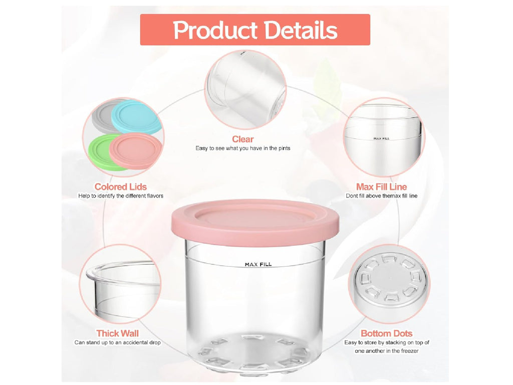 Customization & Fun: The four different color cups and lids provide an opportunity to store different flavors of ice cream, smoothies, and shakes. The customization options make these pints fun and versatile, allowing for endless experimentation with ingredients and flavors.