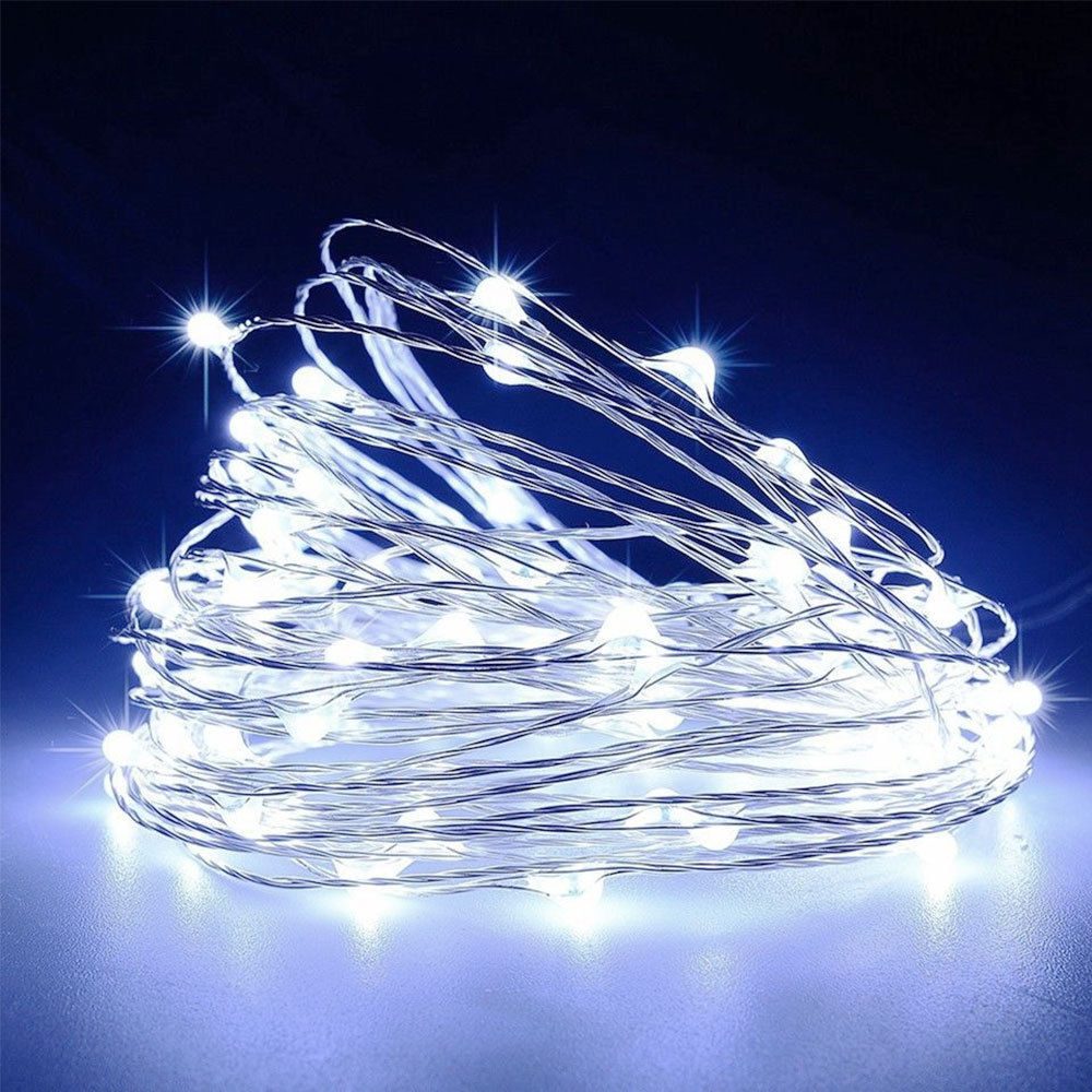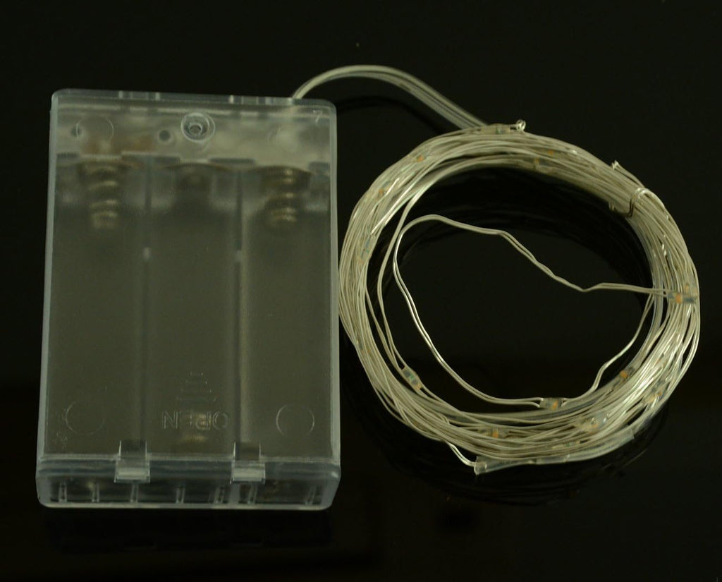 Light Color: Cool White 40 Cool White Color LEDs Lights on 4M Long Silver Ultra Thin Wire. Small Battery Box That is Easy to Hide Requires 3 AA Batteries (Not Included). The Wire is Thin But Sturdy Enough to Perfectly Blend into Whatever Shapes You Want and The Wires is Waterproof. Easy to Use,Can be Used in Many Occasions,Such as Christmas,Halloween,New Year,Valentine's Day,Holiday Party,Wedding,Camping,Awning or Just for Everyday Use.These Lights Can be Used in the Christmas tree,the Hall,Bedroom,Stair,Corridor,etc.(If there is any issue,please don't hesitate to contact us for support)