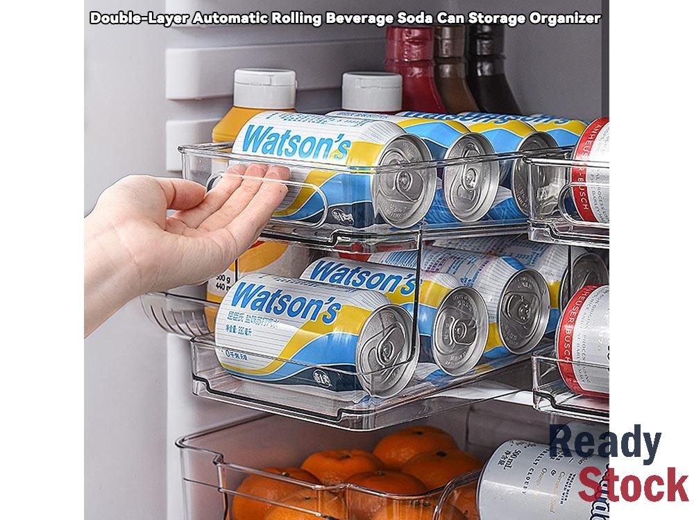 This auction is for One Double-Layer Automatic Rolling Beverage Soda Can Storage Organizer, It's easy to organize canned beverages of the refrigerator and save space.