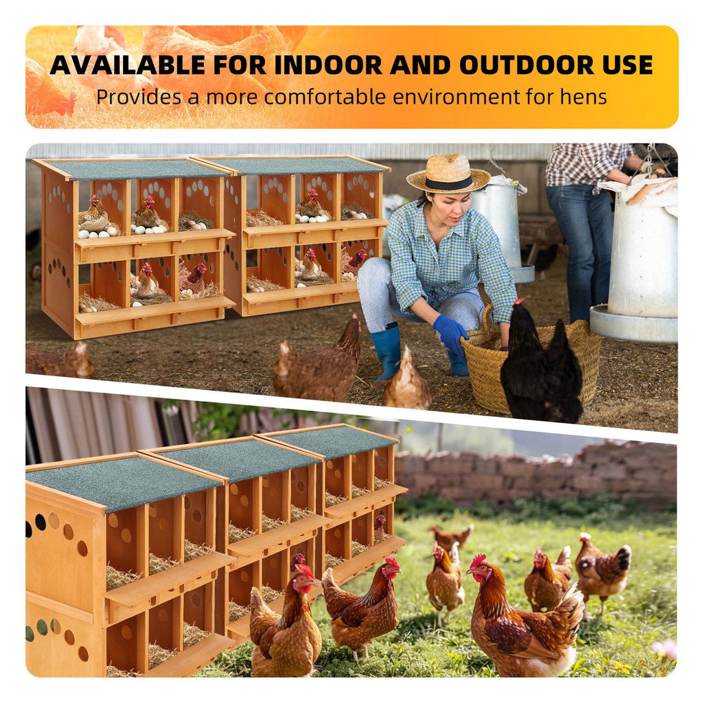 Equipped with perches and baffles, our weatherproof wooden nesting boxes keep eggs from rolling and prevent breakage. They are durable and withstand various weather conditions.