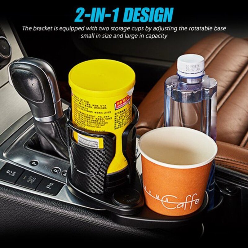 This auction is for One Brand New 2-in-1 Car Cup Holder Expander Adapter, Multifunctional Car Drink Holder with A 360 degree Rotating Adjustable Base, Drinks Bottle Water Cups Hold up to 17oz-20oz Bottled Coffee, Beverage Bottles