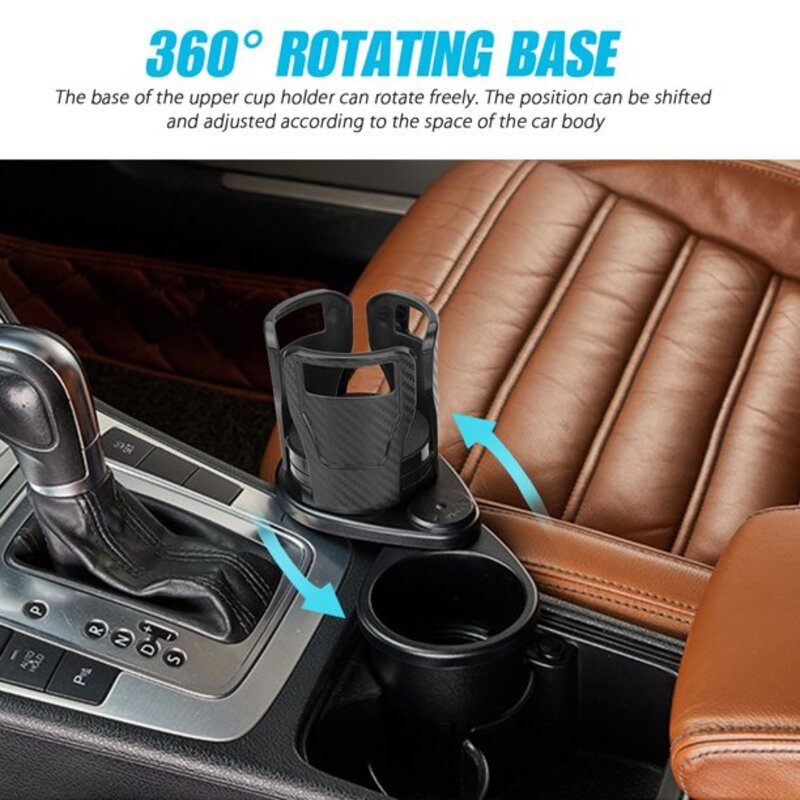 - 360 Degree Rotating Base - The base of the upper cup holder can rotates 360 degrees freely. The position can be shifted and adjusted according to the space of the car body, which is the most comfortable place for you to reach your drink, and save car interior space.