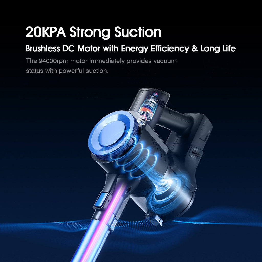 Powerful Suction & Quiet Operation: The vacuum cleaner features a 180W ultra-quiet motor that provides up to 20000Pa of suction power, effectively capturing debris, dust, crumbs, pet hair, and more. The brushless motor reduces heat and noise, offering energy savings and a longer service life.