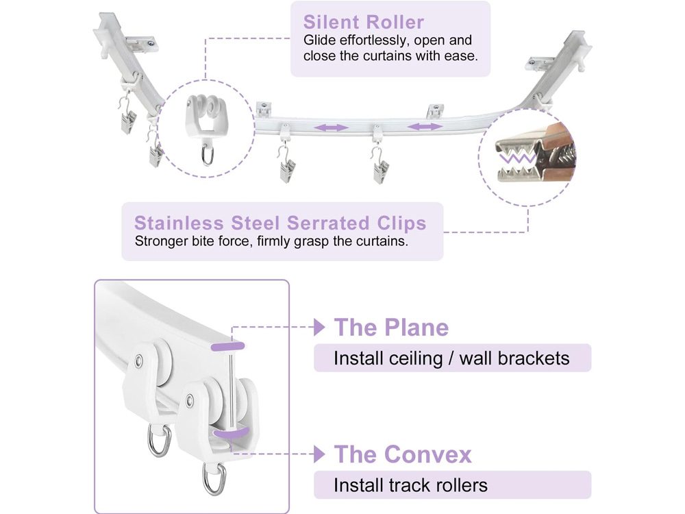 Our curtain ceiling track equips both snap-on ceiling brackets and wall brackets to meet usage need