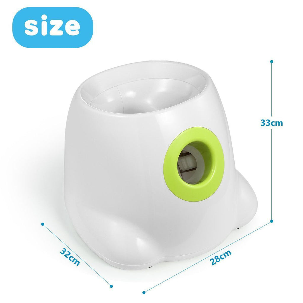 Adjustable distance setting of 3m, 6m or 9m provides a great training tool for both older dogs and a good way to tire out energetic puppies Entertain and exercise your pet indoors and outdoors with the automatic fetch ball launcher. Outdoor ball launcher includes three 5m tennis balls, ideal for fetch gaming. Works with rechargeable Li-ion batteries (AC adapter included)