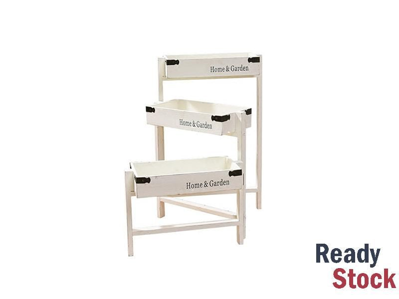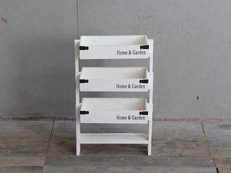 Made of sturdy wood with a worn out appearance and touch, this free-standing Storage Shelf is great for adding a touch of rustic elegance to a countryside garden or serving as a home decoration. With a country rustic-style finish, this storage shelf boasts 3 slatted crate-style tiers that are perfect for holding a number of small potted plants as well as cherished keepsakes and other decorative items.