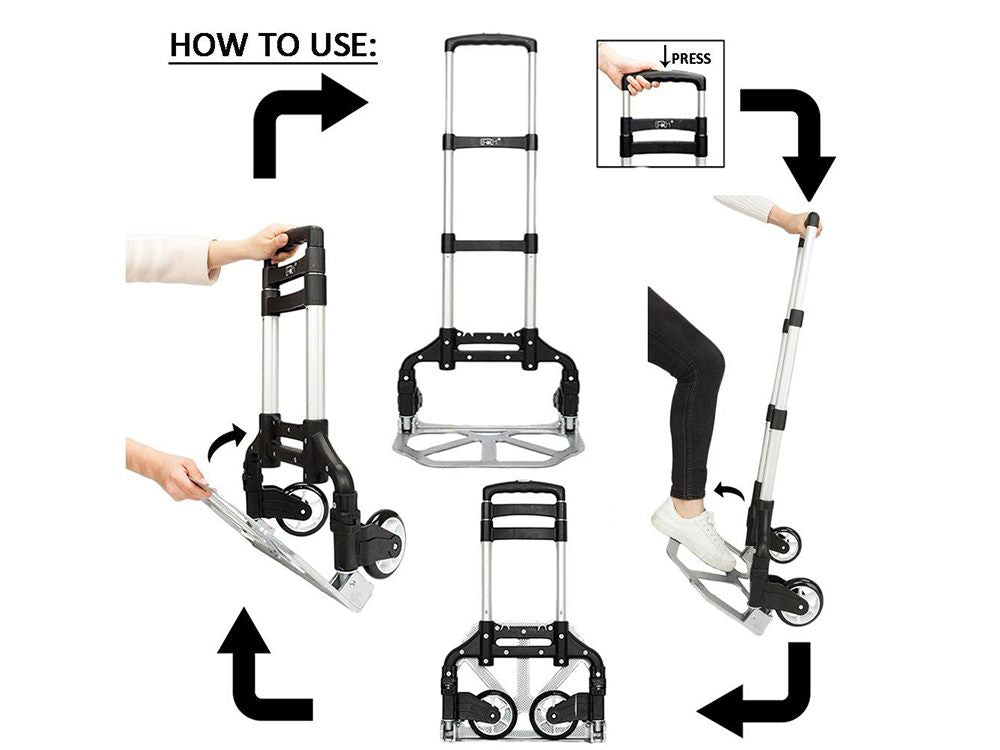 Lightweight industrial-grade trolley helps moving heavy objects. Save your back and carry things around with the right tool for the job. Perfect for use at home, office, business, travel or shopping.