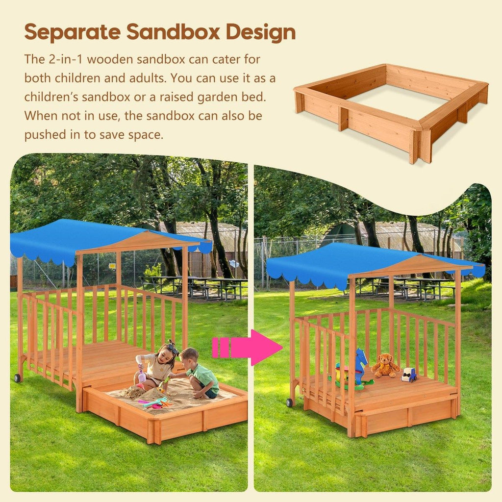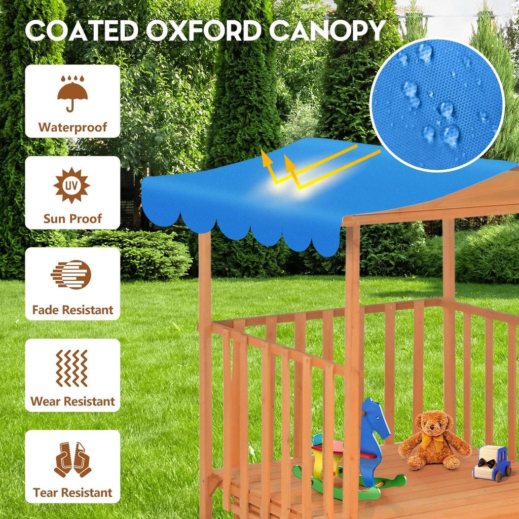 Kids Playhouse Sand Pit Wooden Box Canopy Play Ground Station Outdoor Toys