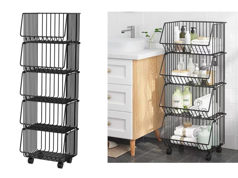 - Easy to assemble: No hassle setup. Simply slide each Storage Basket bottom into the top of another, you could set the rack very well, apply the 4 upgraded wheels according to your needs.