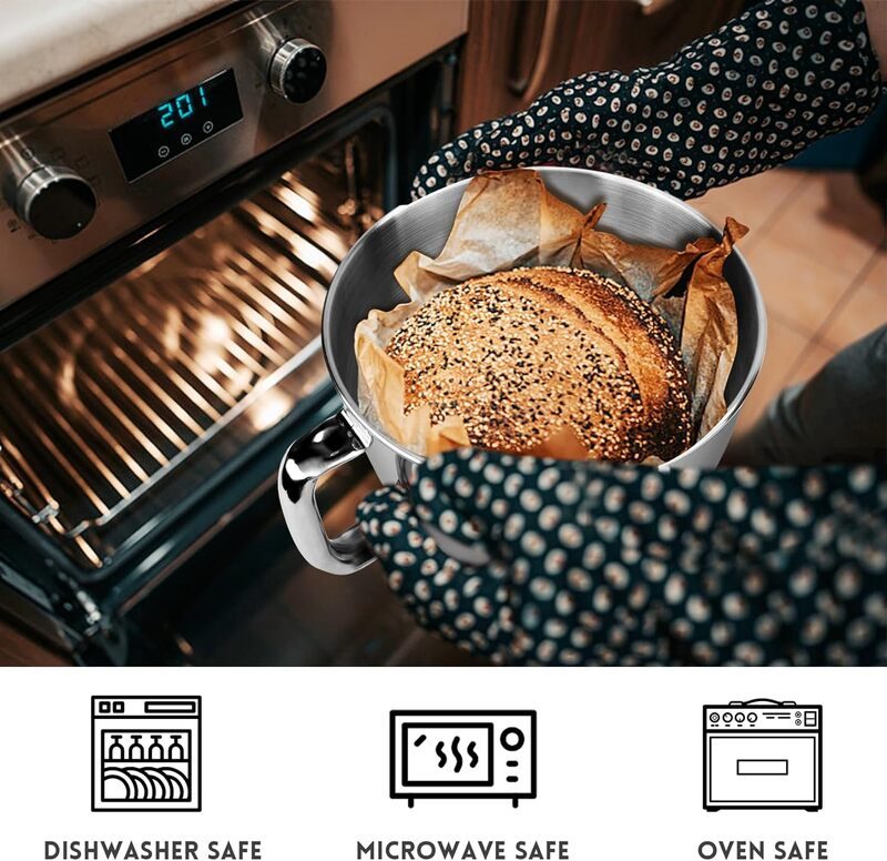 - High Quality: This kitchenaid Mixer bowl is made of food grade 304 stainless steel , no coating and rustproof, non-toxic and odorless, and can be used in various temperatures; Mechanical handle design, sturdy and durable, easy to pick up, large size design, don't worry about food spilling in the bowl
