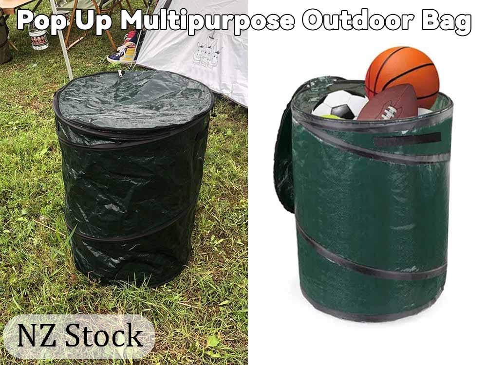 Whether it's to keep your campsite clean, pack away dirty or neat clothes, store sport equipment and toys, this versatile pop-up trash can was made to be used for a wide range of different purposes. Pop up multipurpose outdoor bag is perfect for parties, picnics, camping and more.