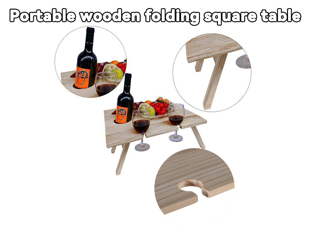 Outsides square foldable wine wooden table, easy to carry, suitable for picnic, at home and most situation. Bring a foldable table to a picnic can bring you happiness. It is a nice gift for your friends or family.