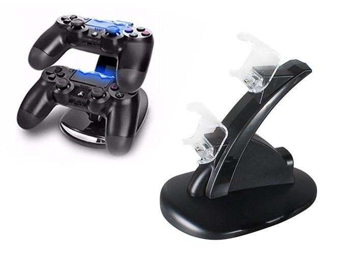 This PS4 USB Charger Station provides an easy and quick way to charge and store your PS4 controllers. By using the charging dock, users will be able to charge up to two dual-shock 4 wireless controllers at once without having to connect them to the PS4 system.
