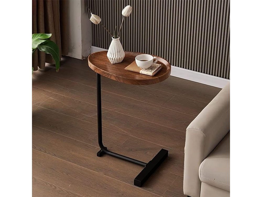 Elevate your living room's style with our chic walnut end table! Its unique C-shaped design effortlessly hugs your sofa, saving space and adding a modern flair to your decor. It's the ultimate living room furniture piece you've been dreaming of!