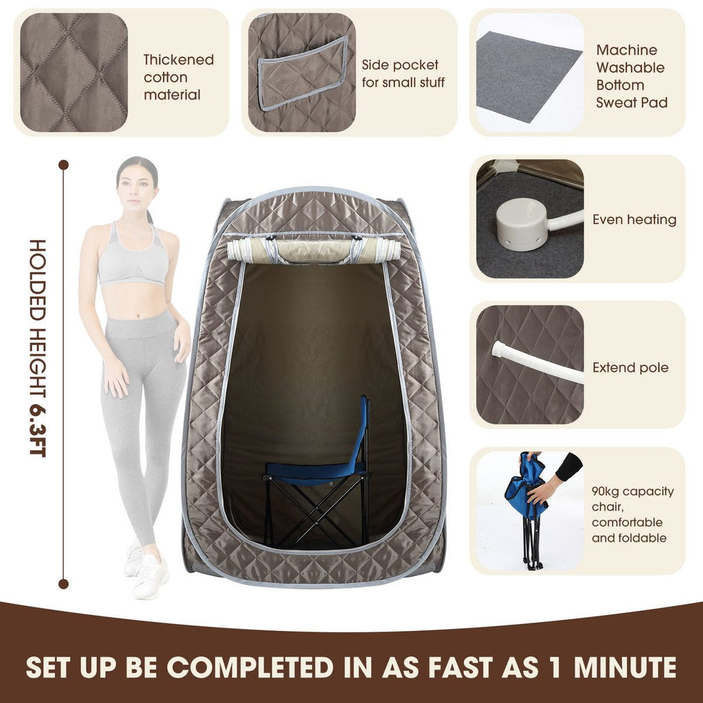 Personal Sauna: Featuring high-strength steel wire support, our portable steam sauna spa forms in three seconds and folds in five
